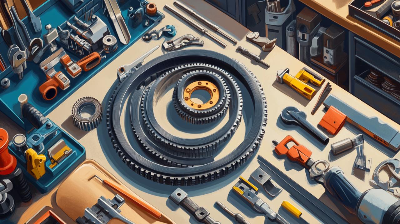 Lorsque la courroie est coupée ou endommagée, il convient de mesurer la longueur totale en ligne droite puis d’ajouter une correction correspondant à l’épaisseur de la courroie multipliée par deux fois le nombre pi. Cette formule mathématique compense le fait que la mesure linéaire ne tient pas compte de la courbure naturelle de la courroie. Dans le cas où la courroie originale a disparu, l’observation des poulies et de leur entraxe permet de calculer la longueur nécessaire en appliquant les formules géométriques appropriées.